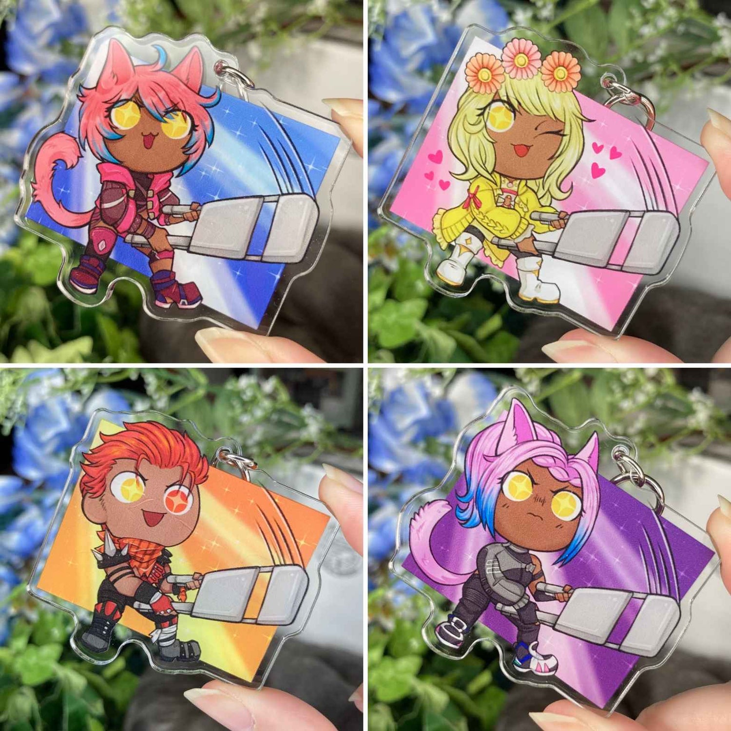 Acrylic Charms are printed with illustrations made in-house by Ickah or Sam....