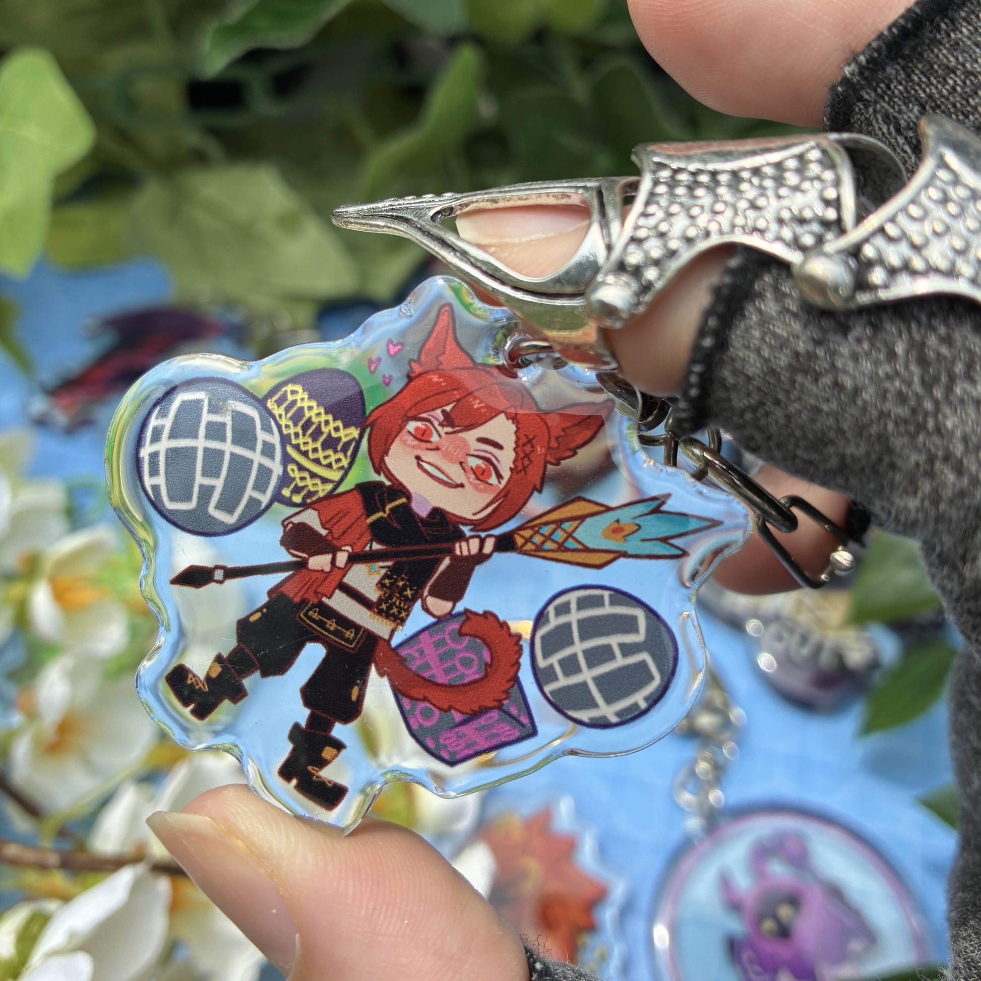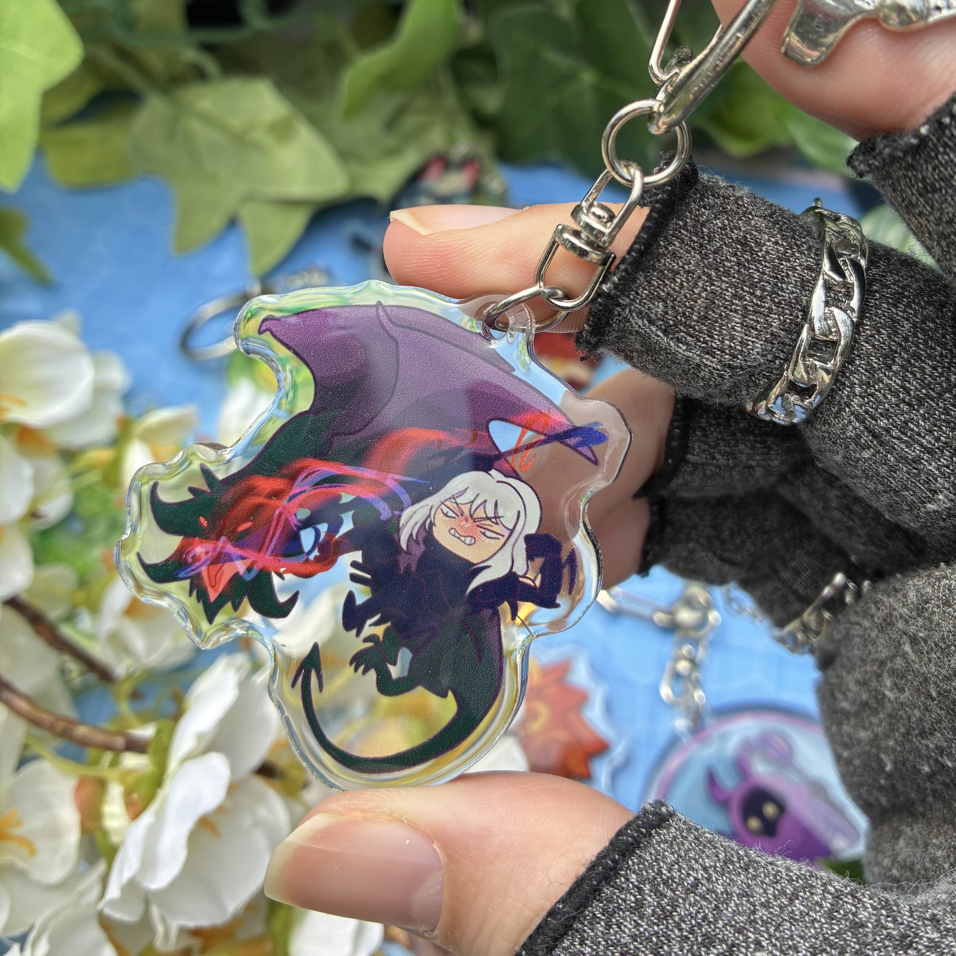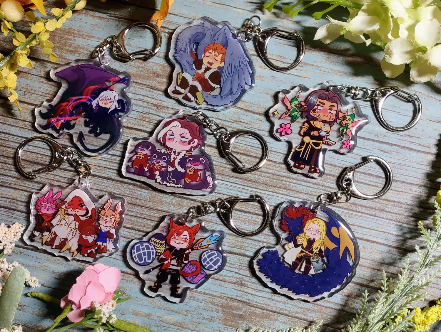 Acrylic charms are made of plastic, which means that they are waterproof but somewhat vulnerable to scratching. The epoxy coating turns it from artwork to functional artwork - it has some durability, but still needs a level of respect.
