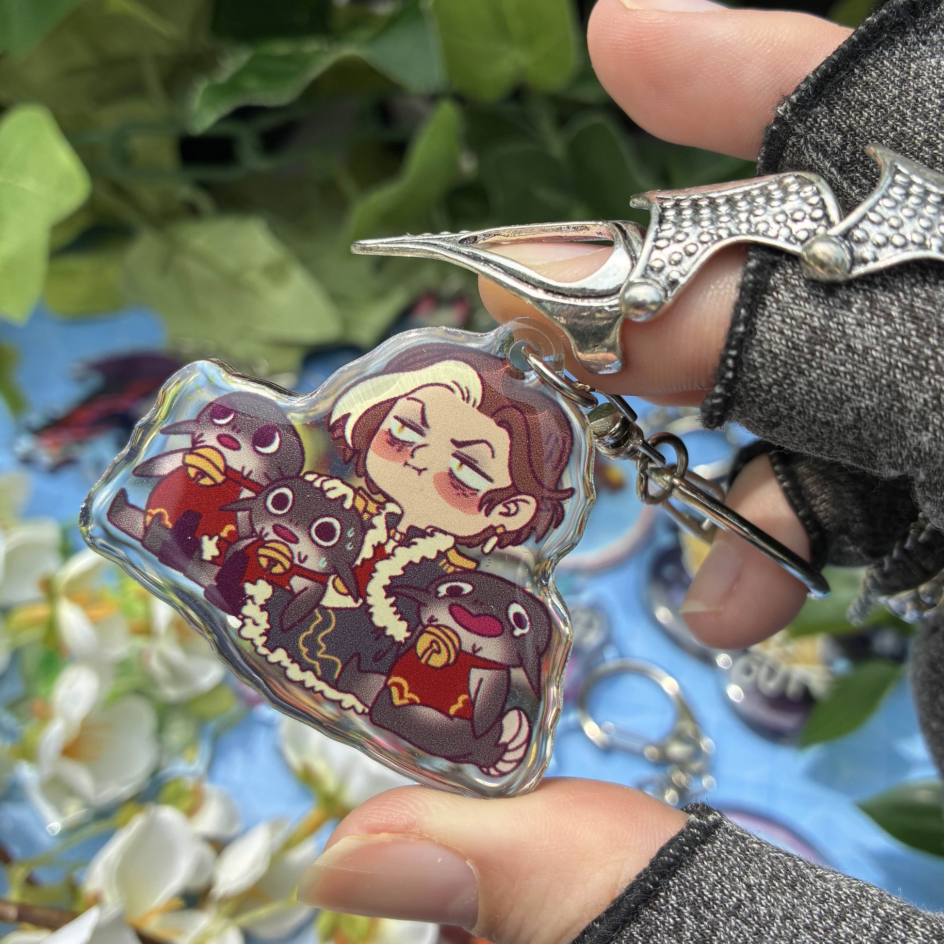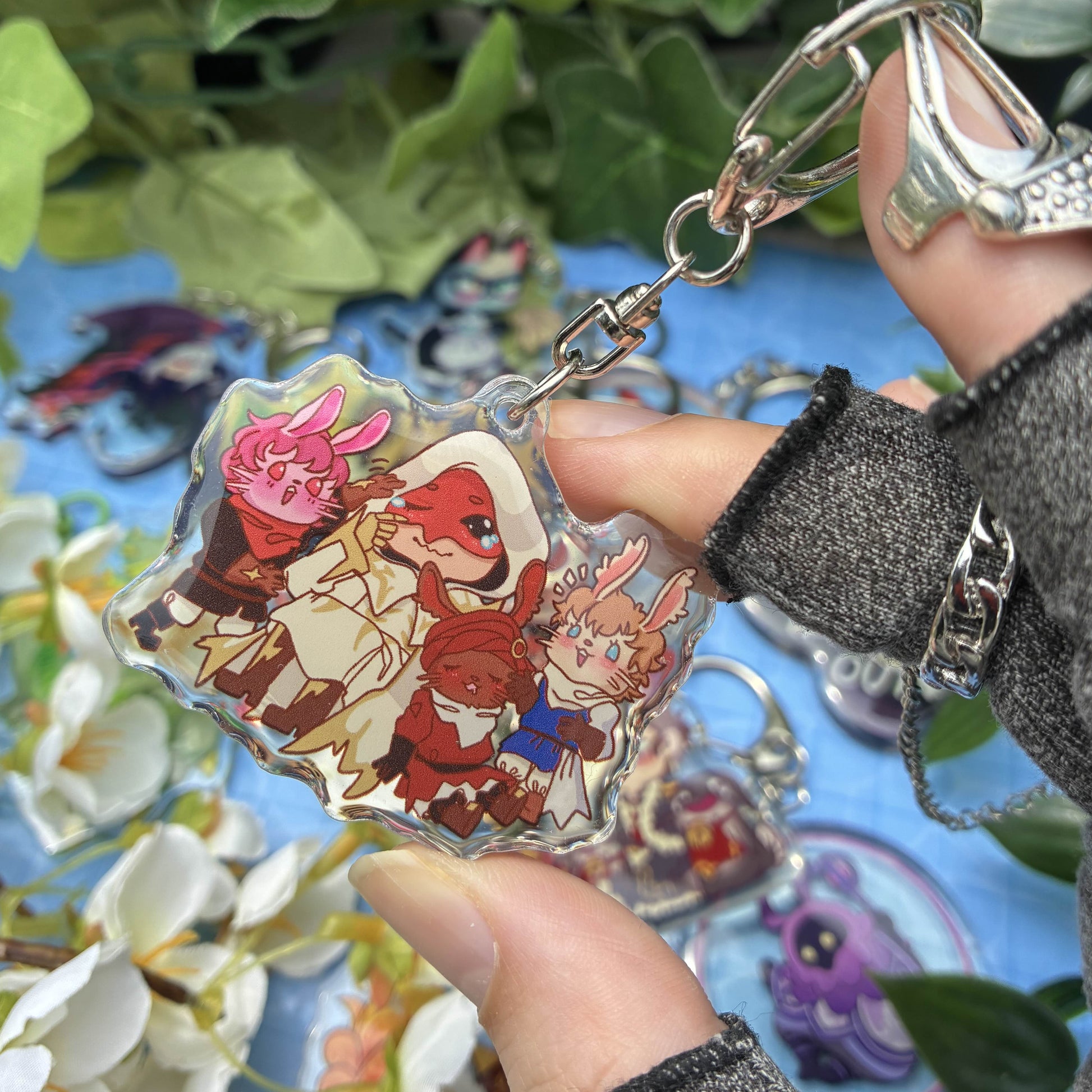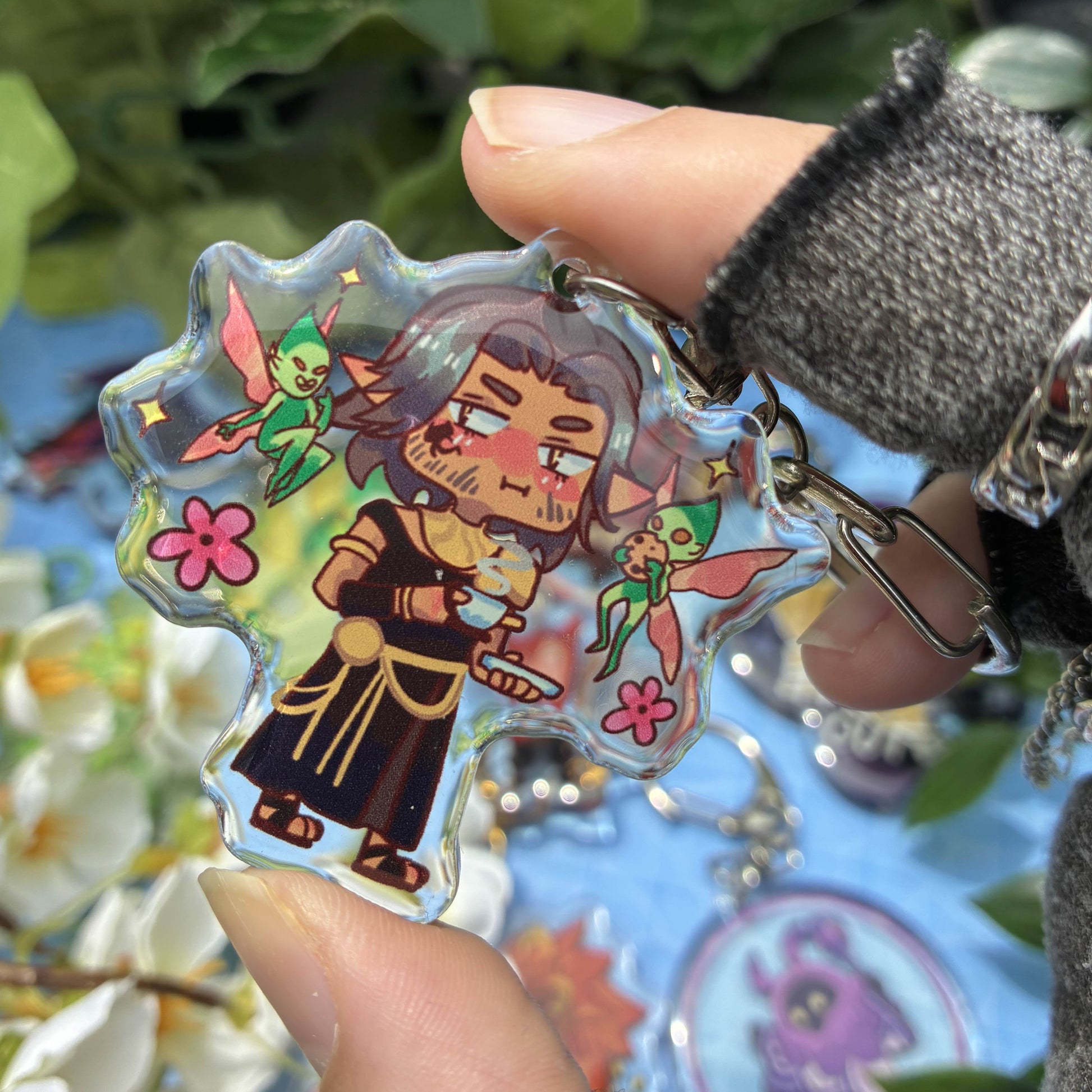 Acrylic charms are made of plastic, which means that they are waterproof but somewhat vulnerable to scratching. The epoxy coating turns it from artwork to functional artwork - it has some durability, but still needs a level of respect.