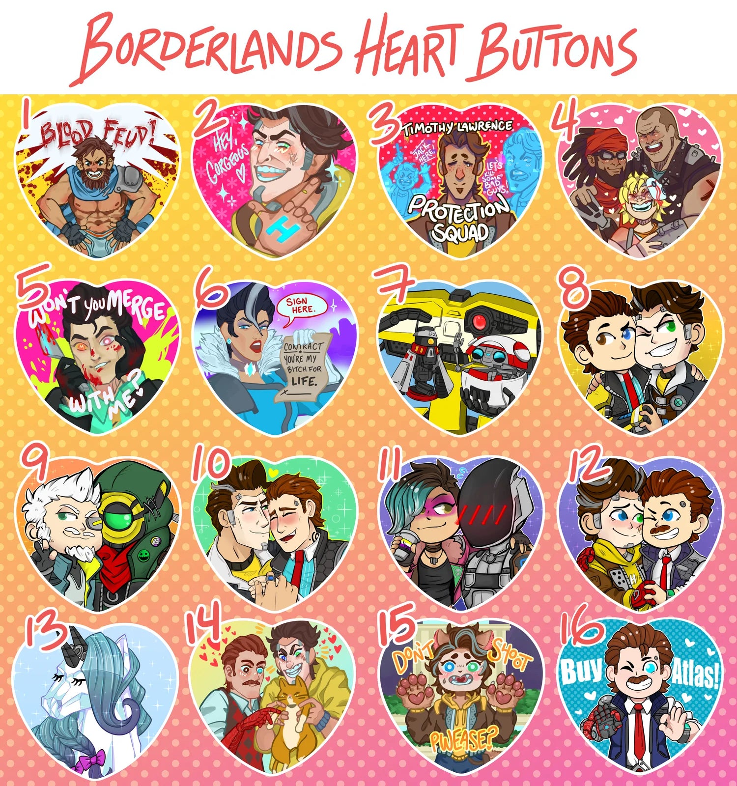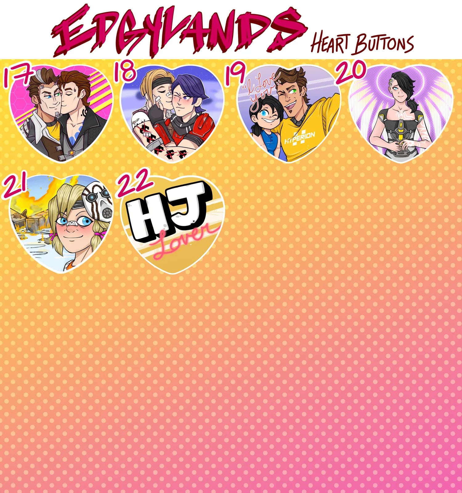 This is a heart-shaped, pinbacked button measuring approximately 2.5" wide.