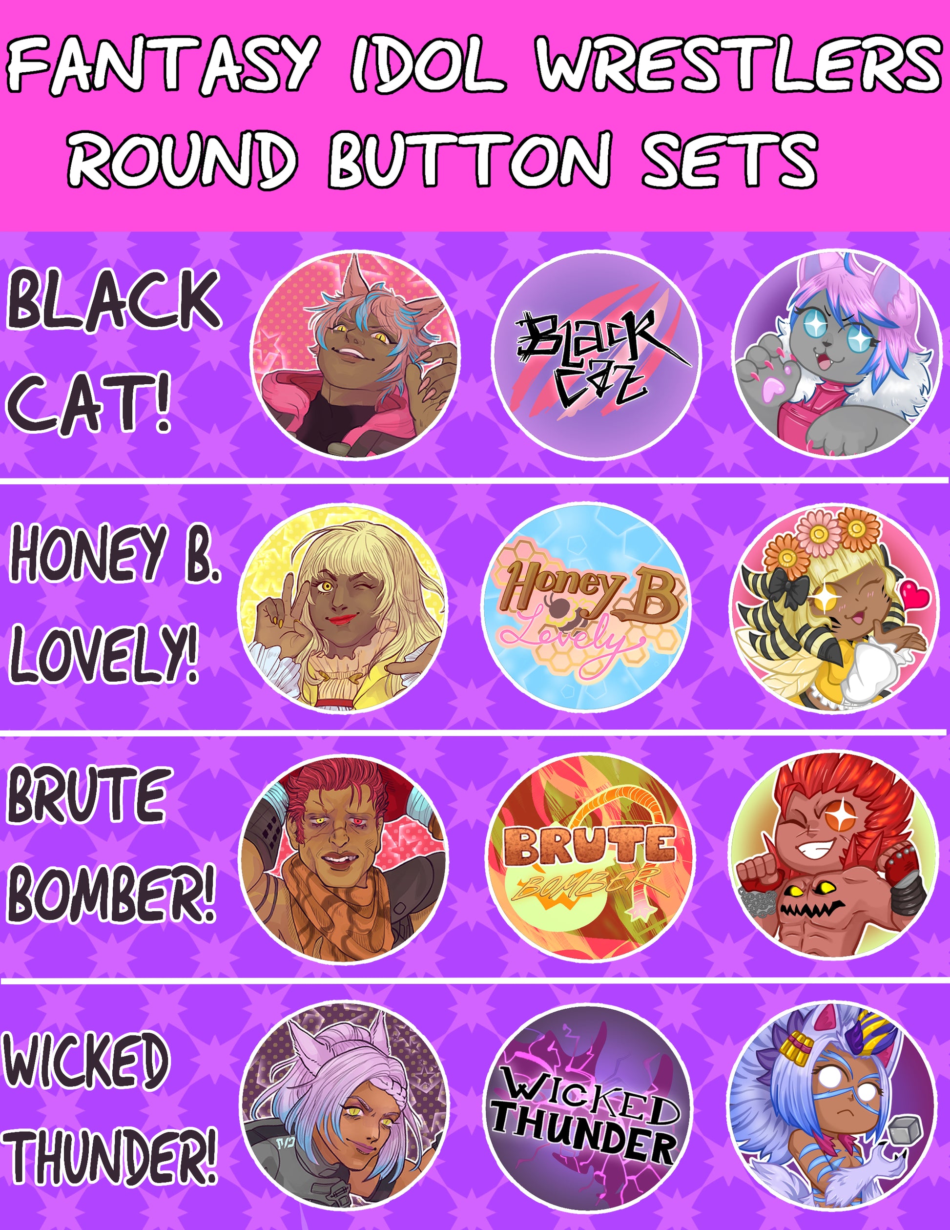 Fantasy Idol Wrestlers Raid Round Button Sets!