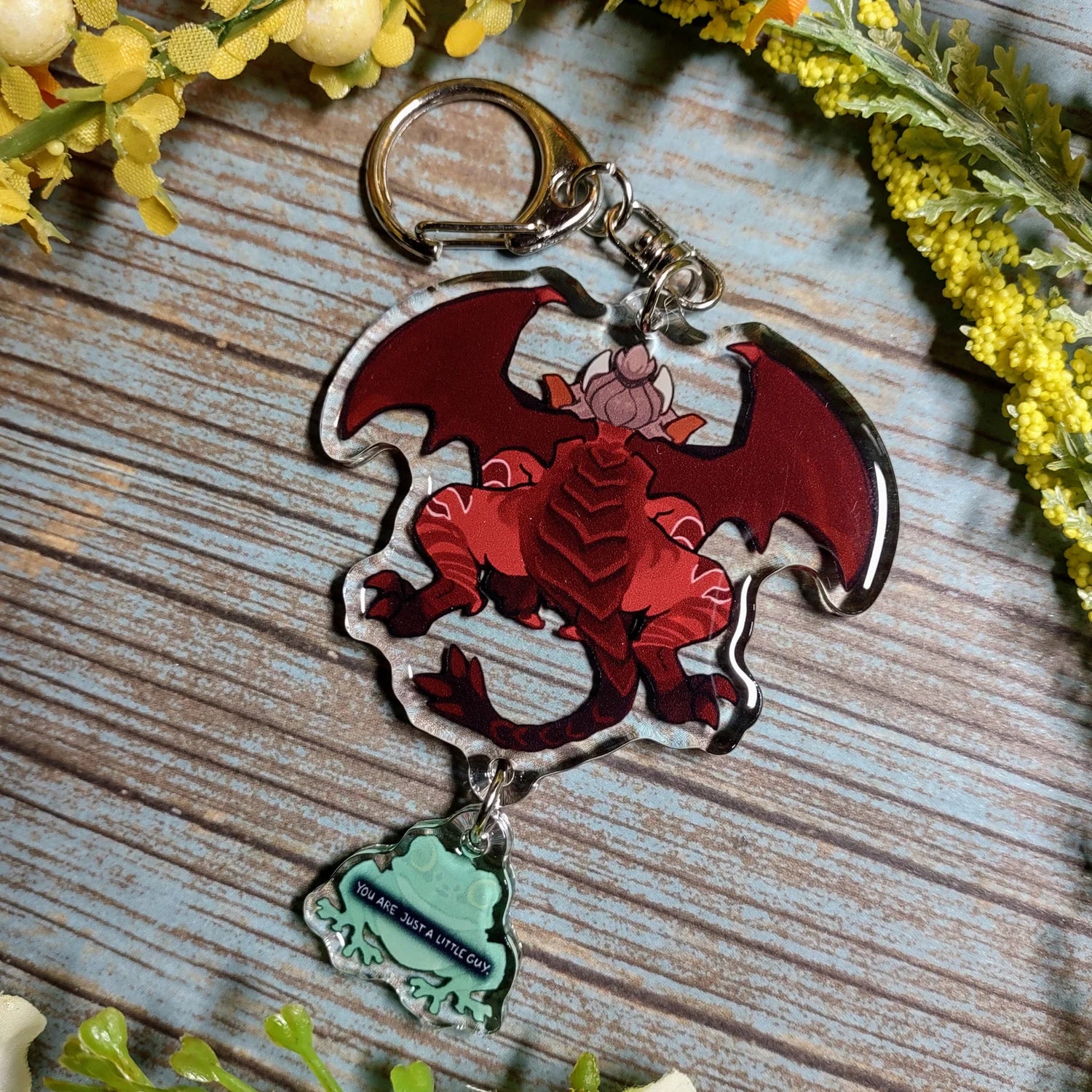 This is a double-sided epoxy acrylic DANGLE charm that measures approximately 2.5" +0.75" long.