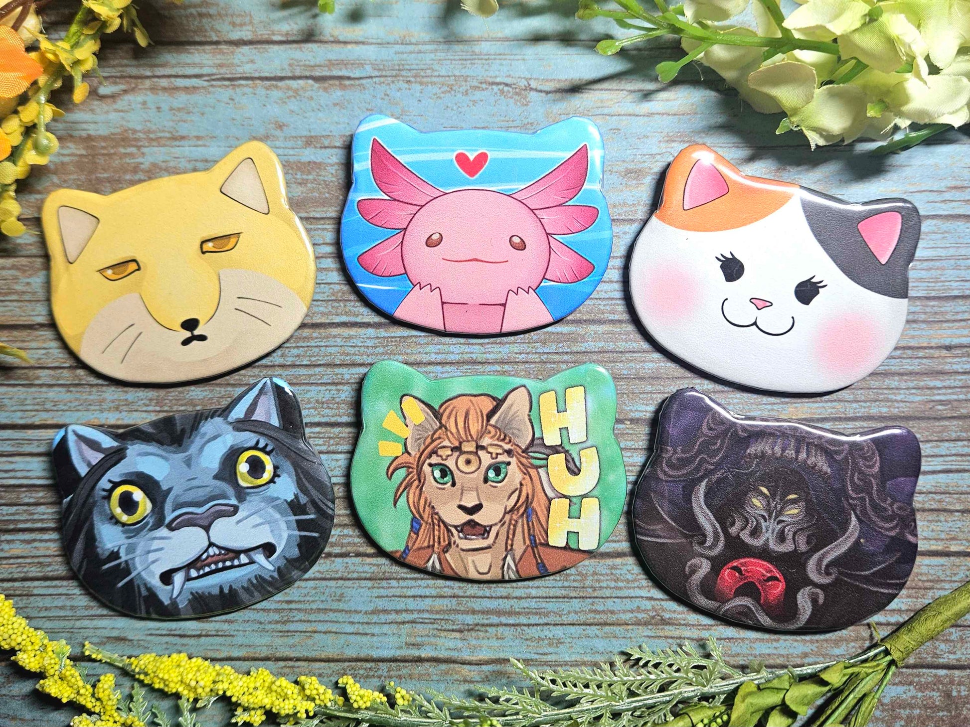 Fourteen Fantasy Cat-Shaped Buttons
