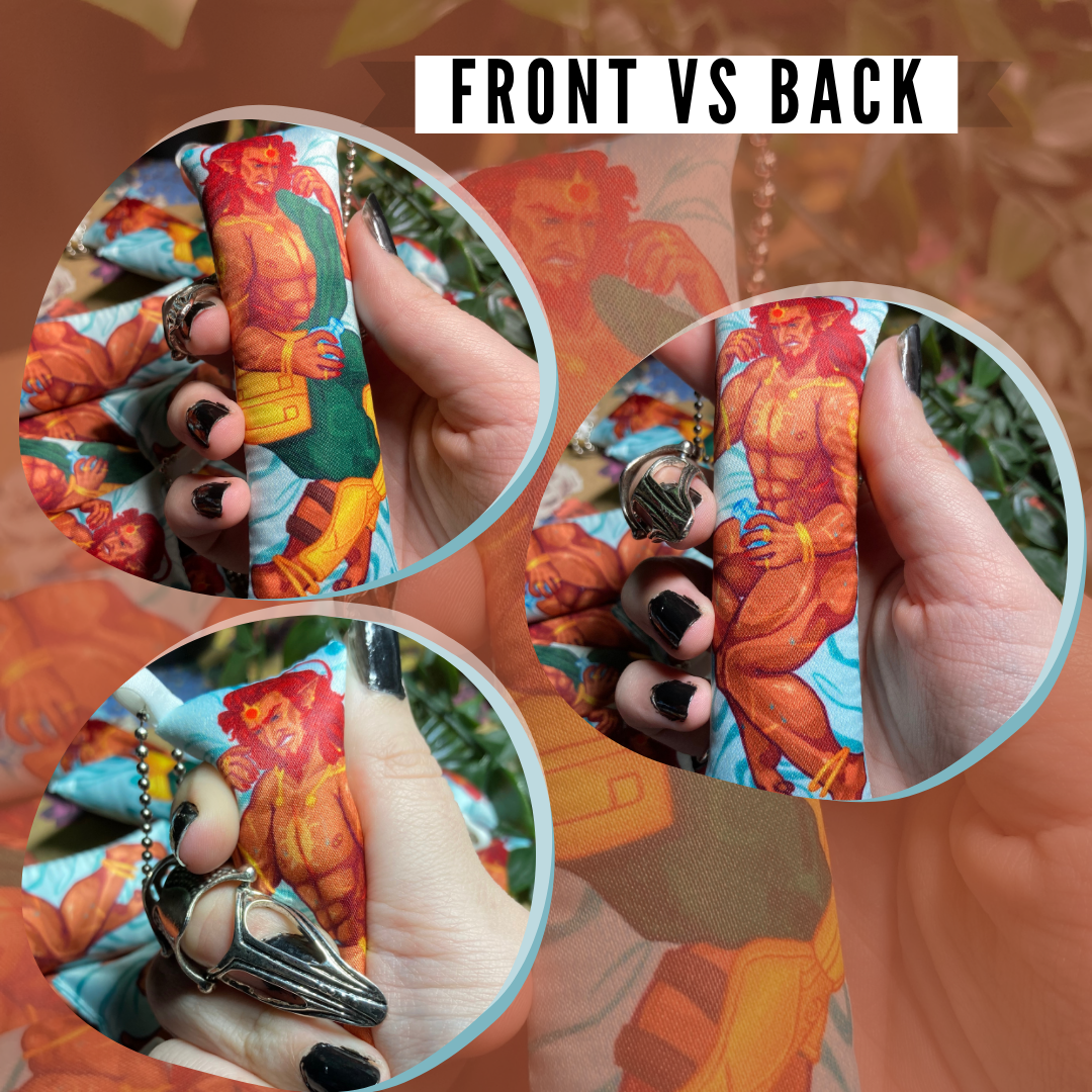 The KEYCHAINS listed are stuffed with polyester and measure approximately 12x4cm. They have a fabric loop and a chain bead attachment. These are shipped in a poly mailer or cardboard box, depending on the size of your order.