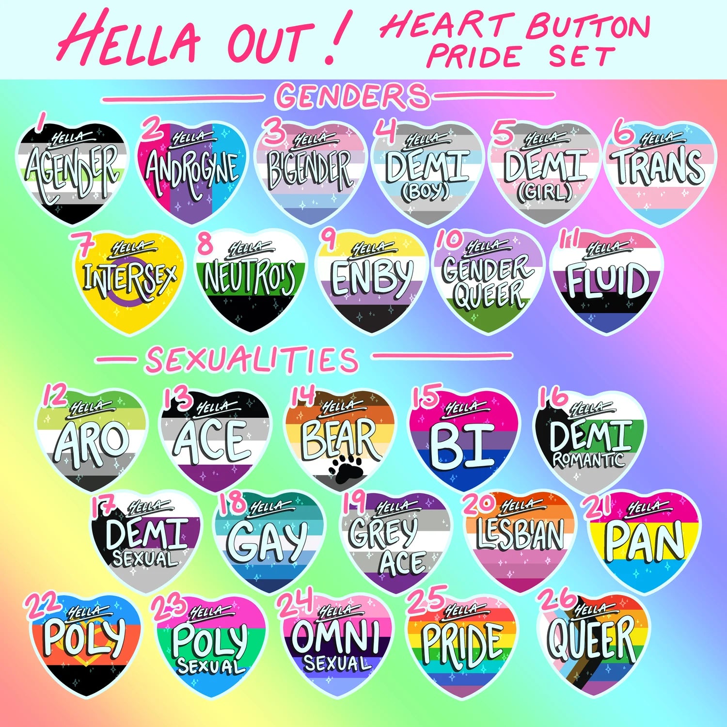 This is a heart-shaped, pinbacked button measuring approximately 2.5" wide.