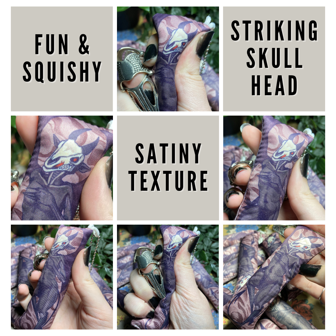 The KEYCHAINS listed are stuffed with polyester and measure approximately 12x4cm. They have a fabric loop and a chain bead attachment. These are shipped in a poly mailer or cardboard box, depending on the size of your order.