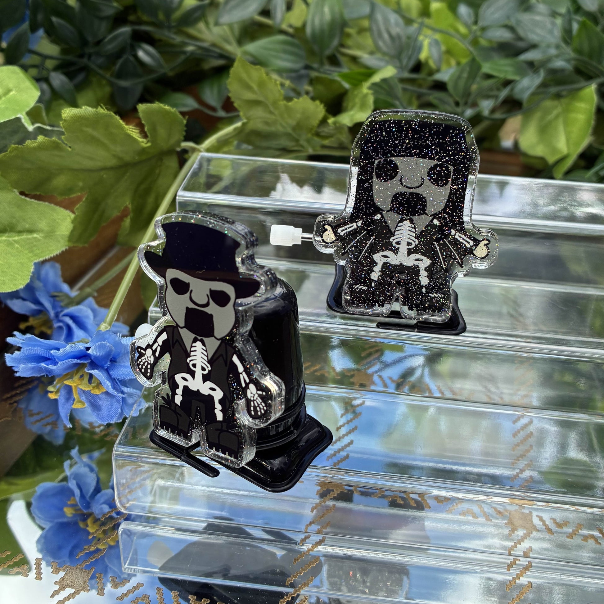 This is a standee measuring 2” high that adheres to a set of wind-up feet! It's available in three designs - Habit, Top Hat, or Habit-With-Wings!