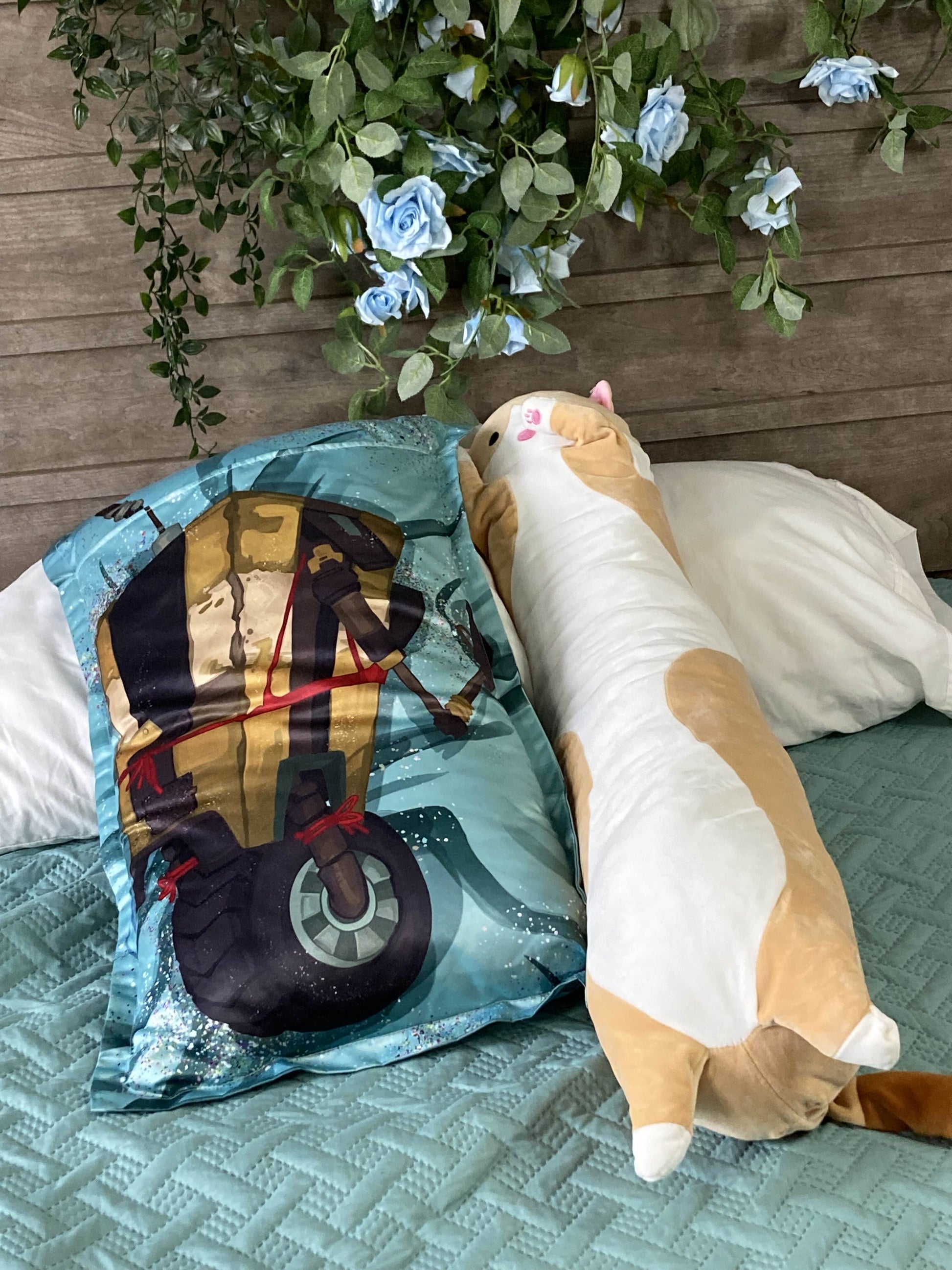 This style of pillowcase is 48x74cm (approc 19"x30".) Please keep in mind that this listing is for a pillow COVER and doesn't include any stuffing! These pillows have a pocket/flap style closure, normally located near his antenna.