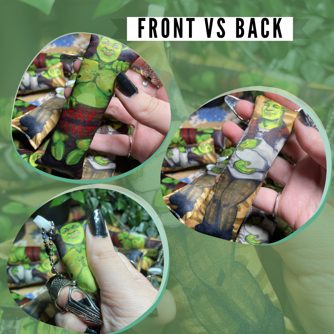 The KEYCHAINS listed are stuffed with polyester and measure approximately 12x4cm. They have a fabric loop and a chain bead attachment. These are shipped in a poly mailer or cardboard box, depending on the size of your order.