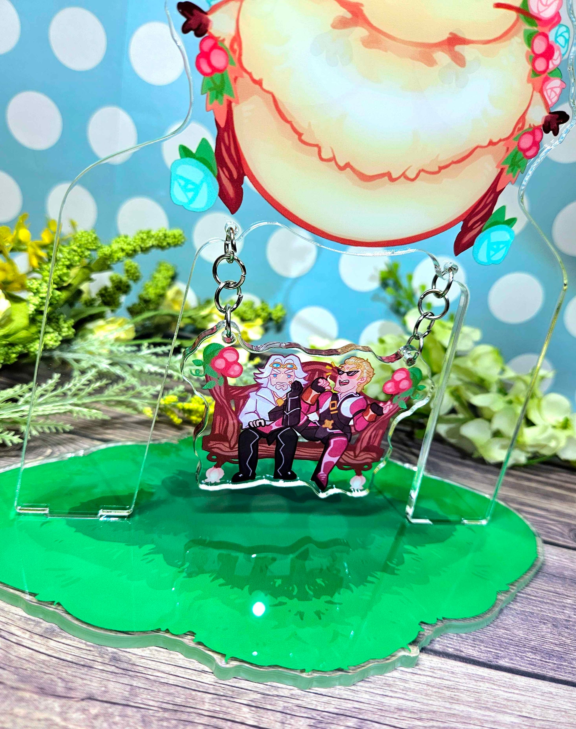 This is an acrylic standee measuring 8" tall for the height and 8" wide for the base.