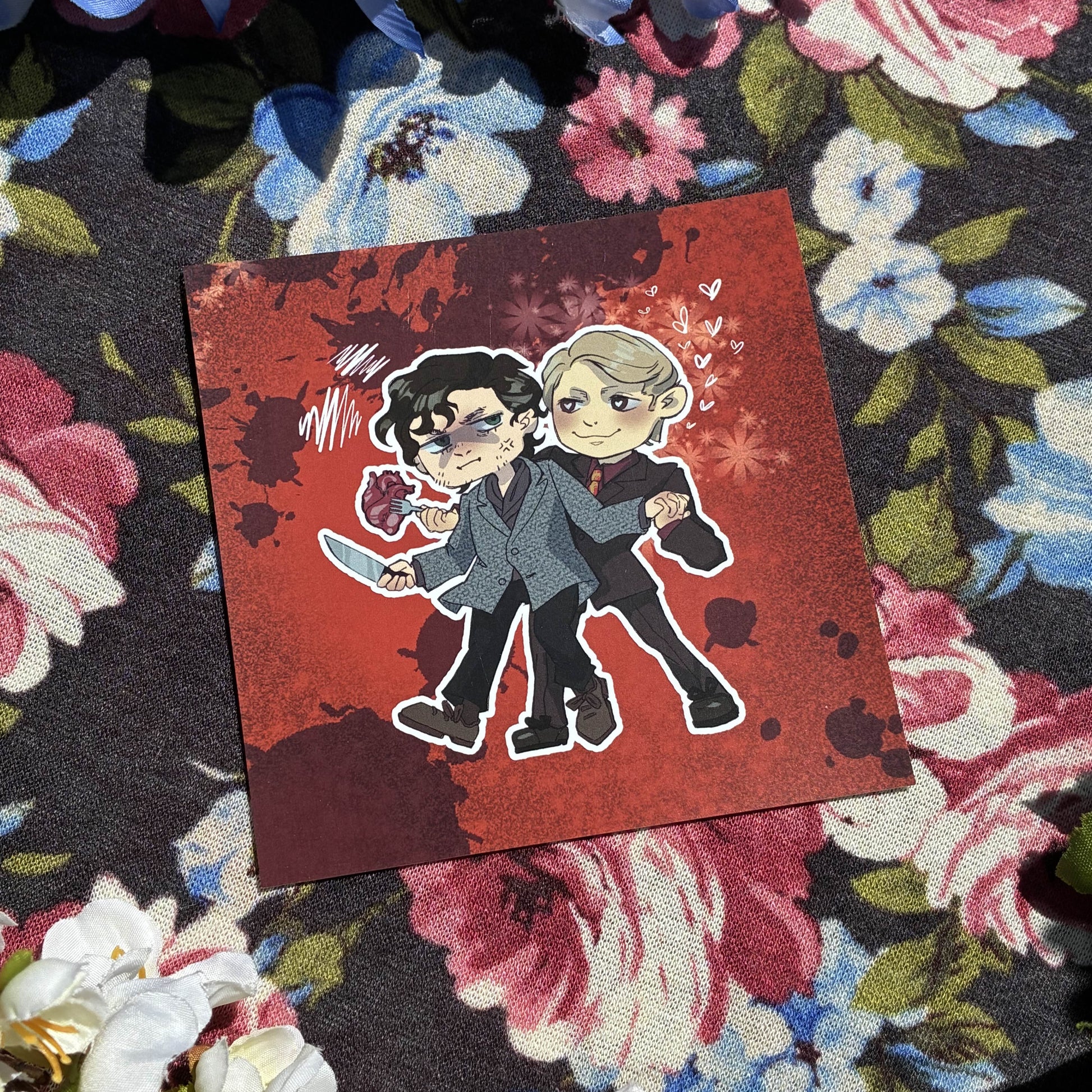 Ickah here! Originally these two artworks were meant to be on either side of a single charm...but I didn't like the idea of folks being forced to see one OR the other, and I didn't like how they lined up. So instead, I released the designs as two separate charms, as well as two separate mini prints - since I know a lot of fannibals are on the fence about keychains. :)