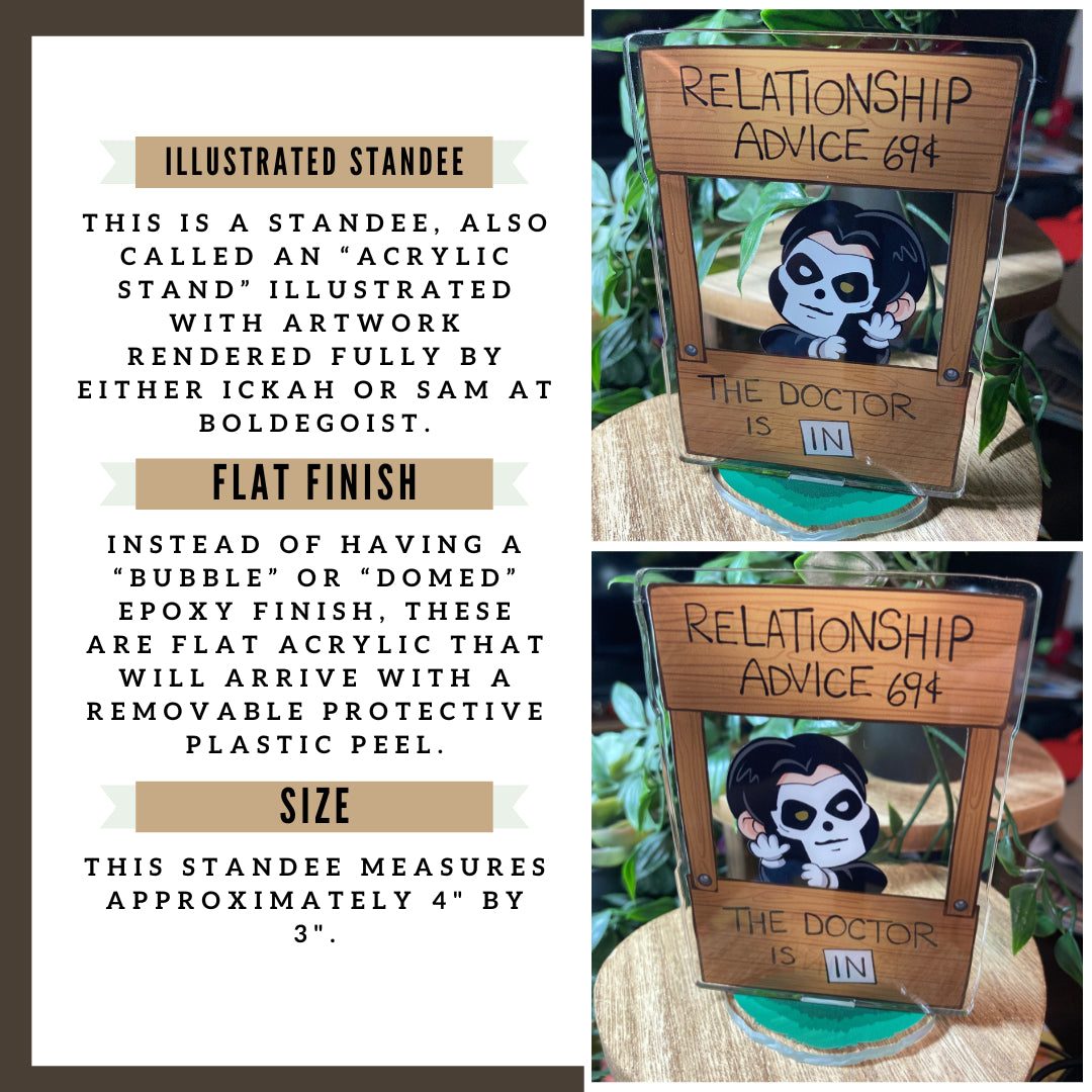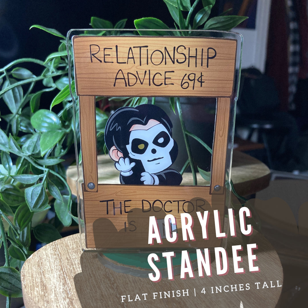 This is an acrylic standee measuring 4" for the height and 3" wide.