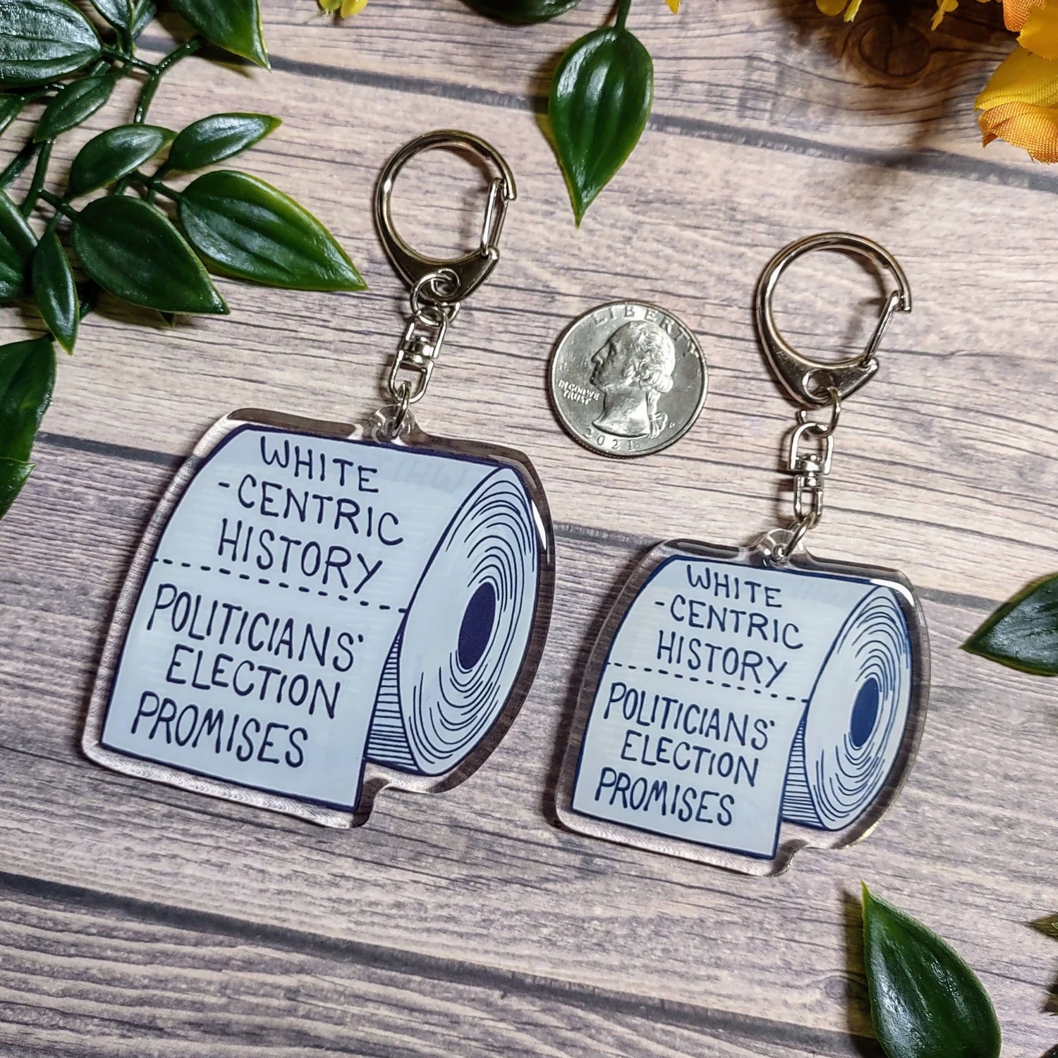 This is a double-sided epoxy acrylic charm that measures approximately 2.5" wide.
