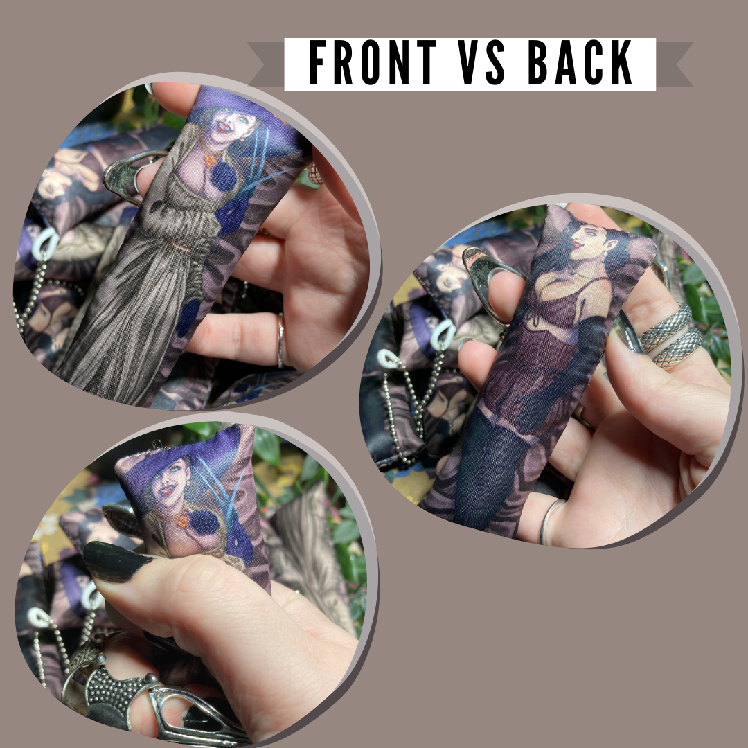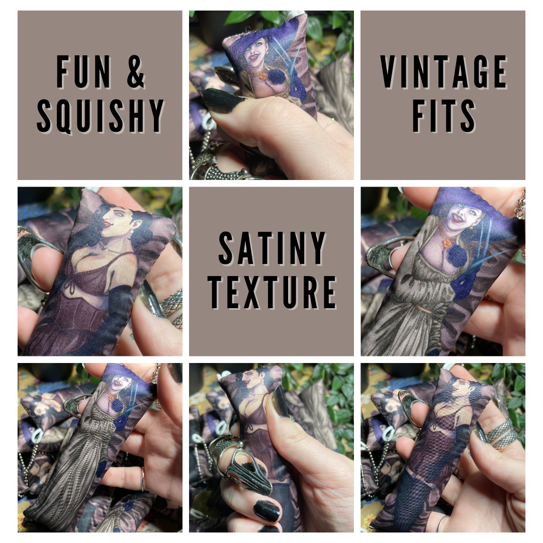 The KEYCHAINS listed are stuffed with polyester and measure approximately 12x4cm. They have a fabric loop and a chain bead attachment. These are shipped in a poly mailer or cardboard box, depending on the size of your order.